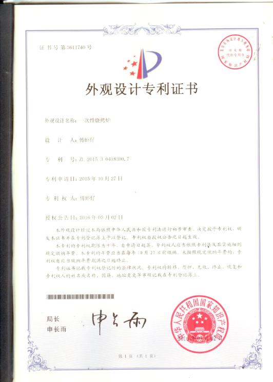一次性烧烤炉外观设计专利