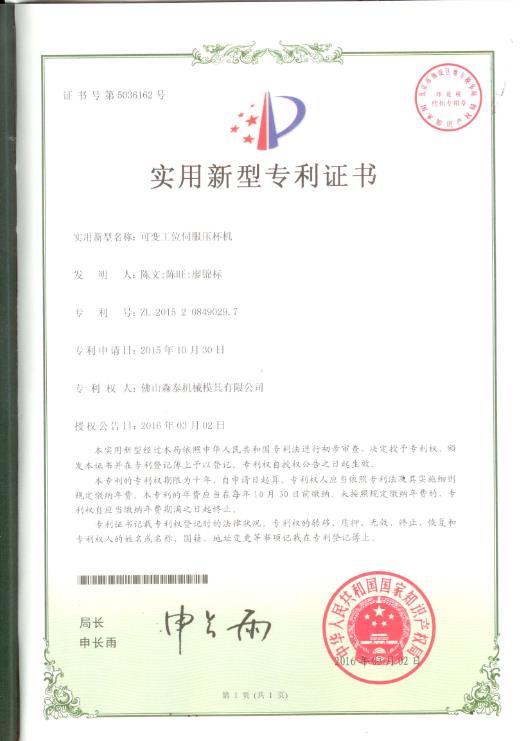 可变工位伺服压杯机实用新型专利