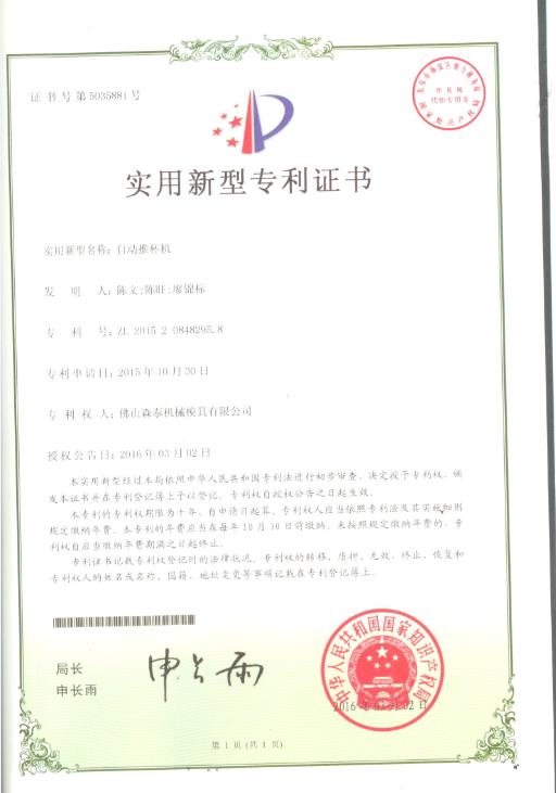 自动推杯机实用新型专利