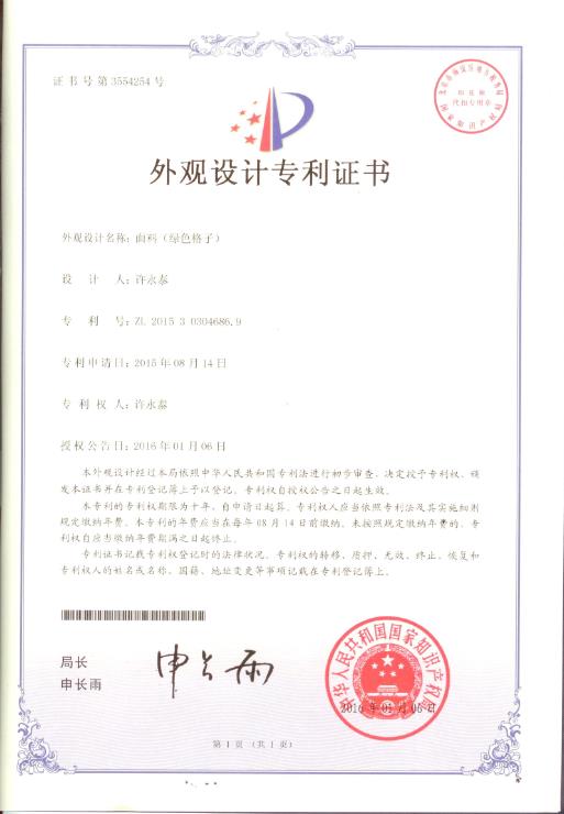 面料(绿色格子)外观设计专利